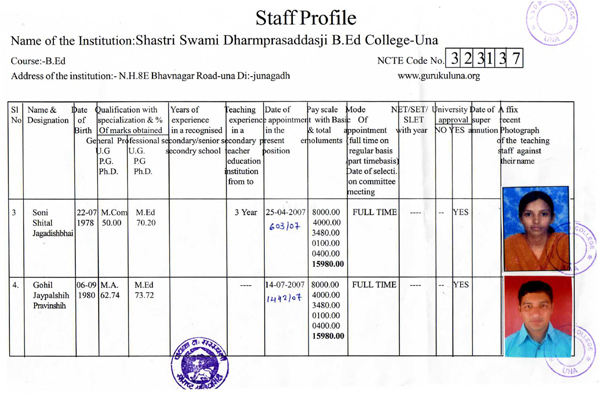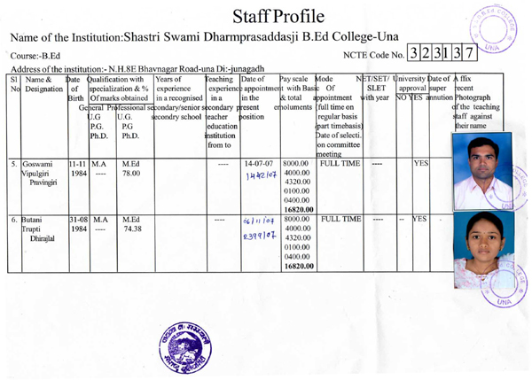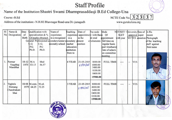 Staff Profile :